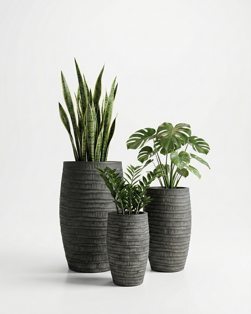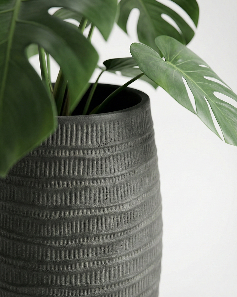 Areca Textured Fiberglass Planter – Charcoal Grey
