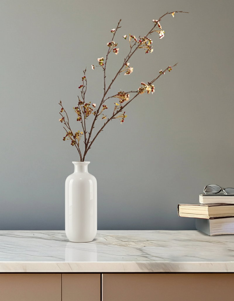 Alamkari India Fabric Artificial Cherry Blossom Stick (130 cm, White)