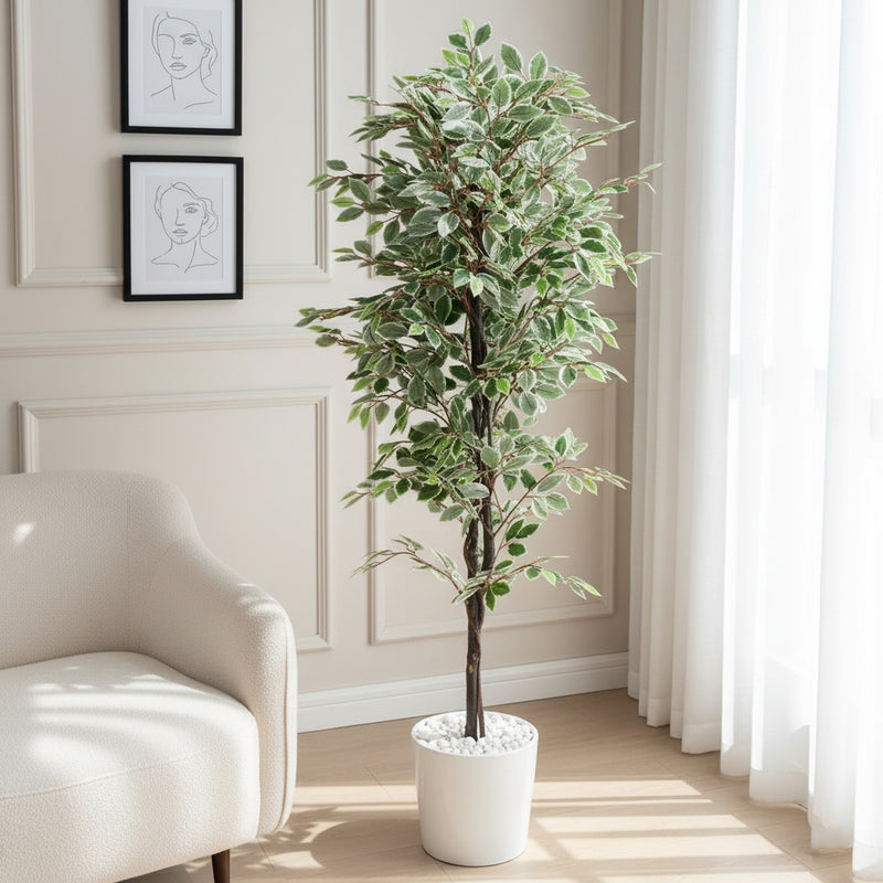 Artificial Classic Variegated Ficus Tree - 4 ft (120 cm)