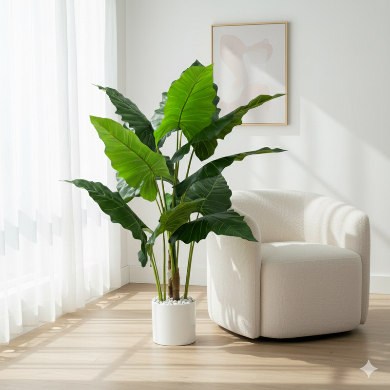 Artificial Compact Green Caladium Leaf Plant - 4 ft (120 cm)