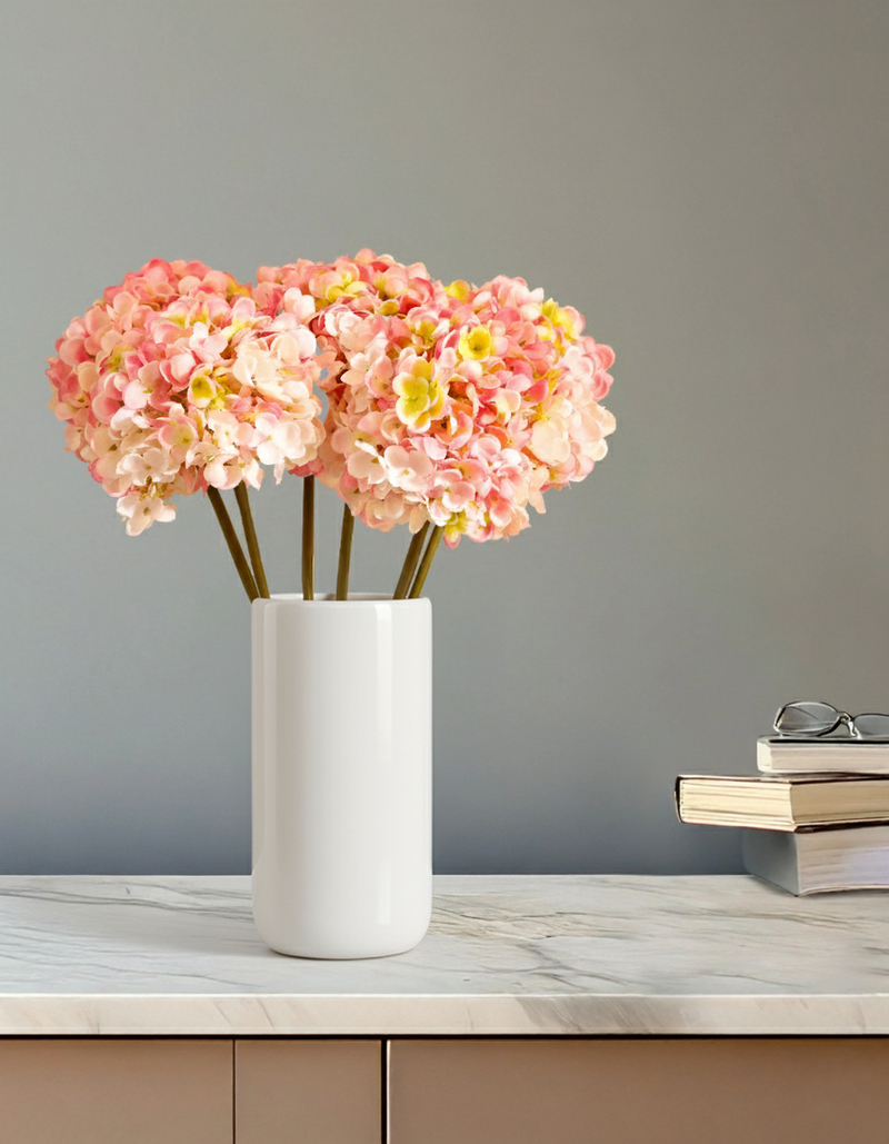 Artificial Hydrangea Flower Sticks (3 Sticks, 50 cm, Light Pink)