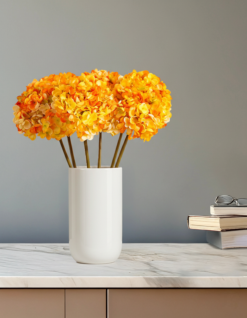 Artificial Hydrangea Flower Sticks (3 Sticks, 50 cm, Yellow)