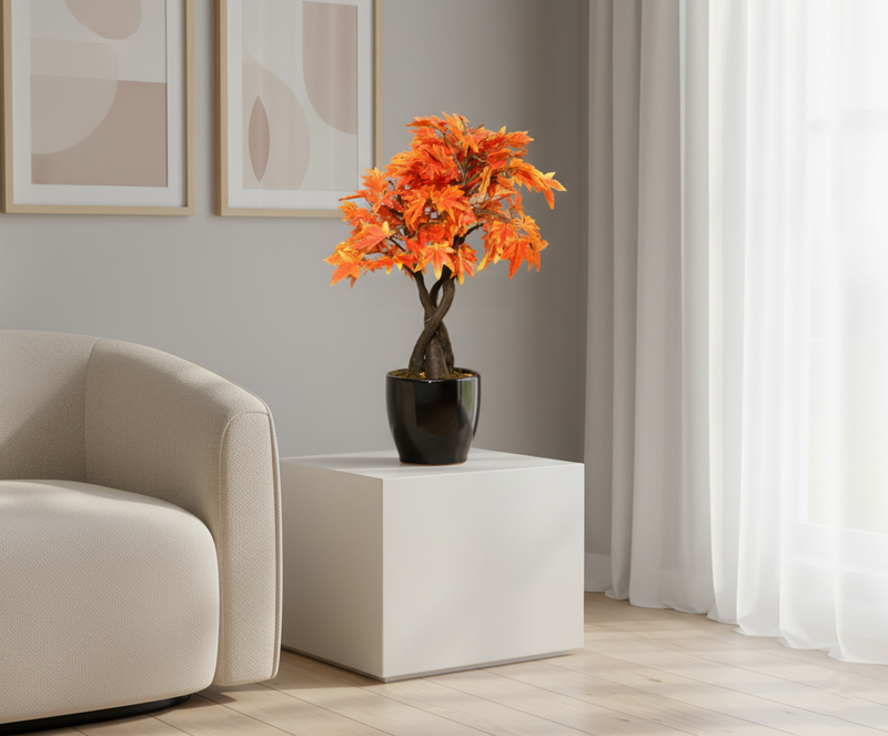 Artificial Orange Maple Bonsai Tree - 1.3ft