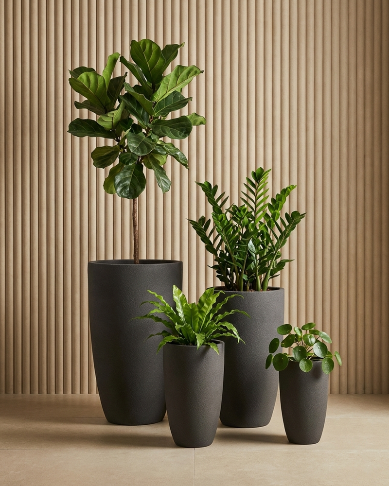 Big Shark Fiberglass Planter – Matte Black Tall Modern Planter