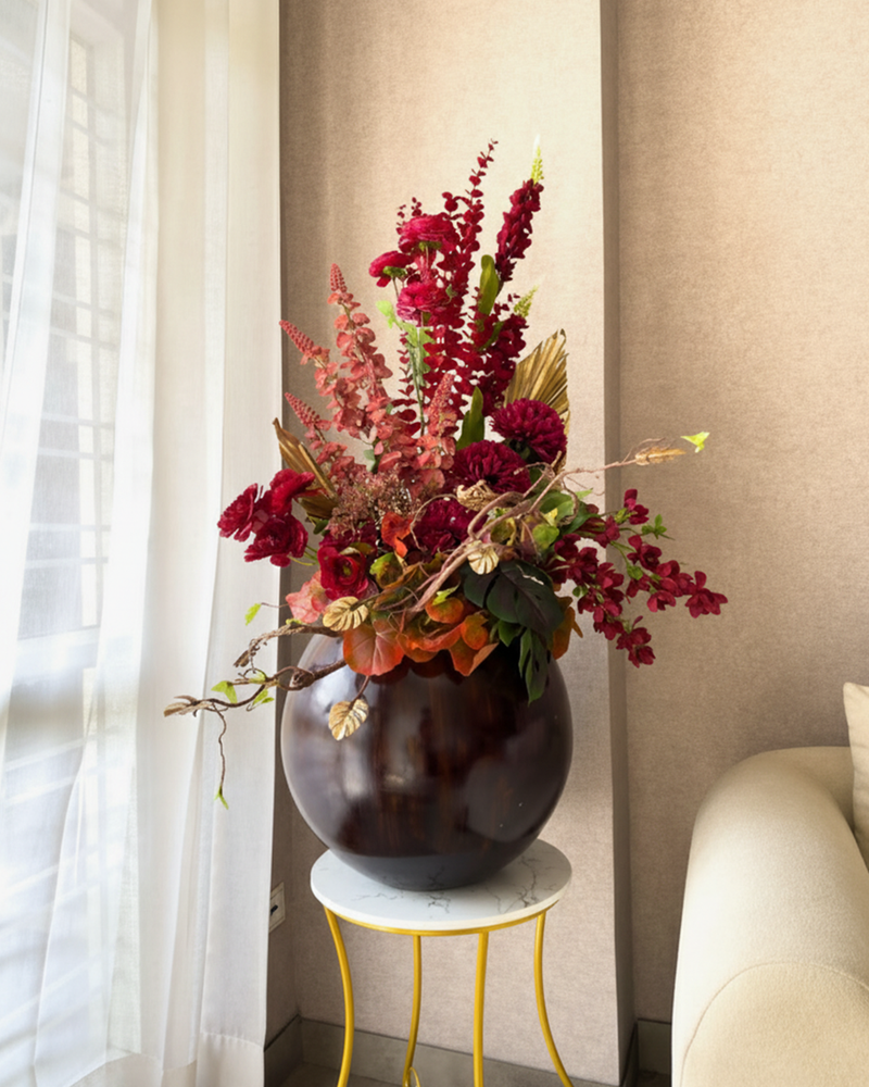 Dramatic Crimson Dried Flower Centerpiece With Pot