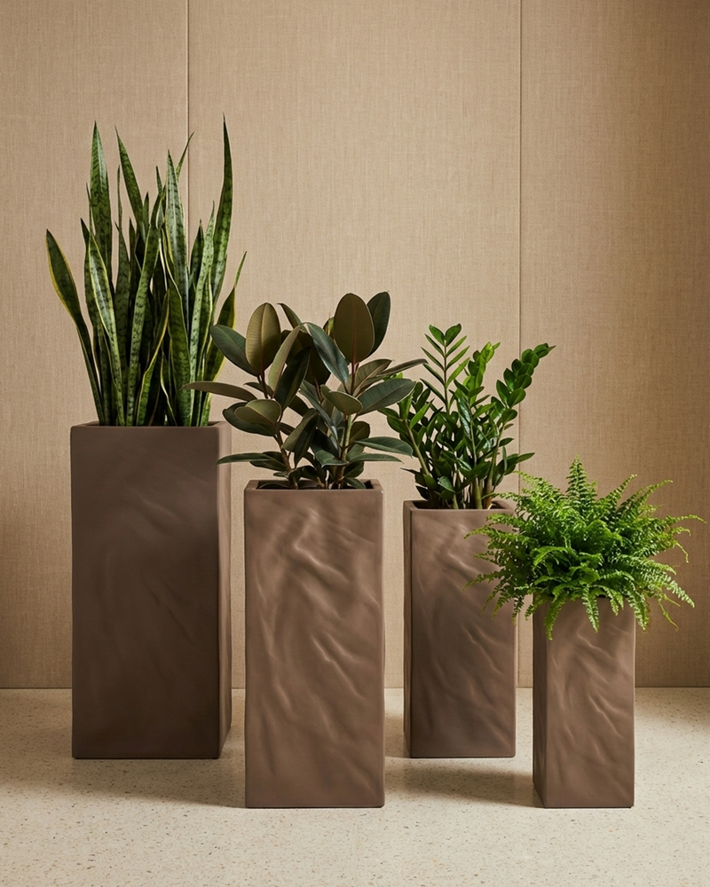 Mountain Fiberglass Planter – Pale Brown