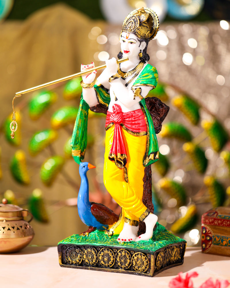 Multicolour Krishna Idol with Peacock