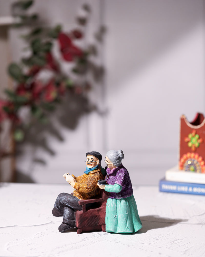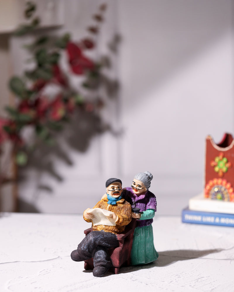 Old Couple Statue Reading Newspaper