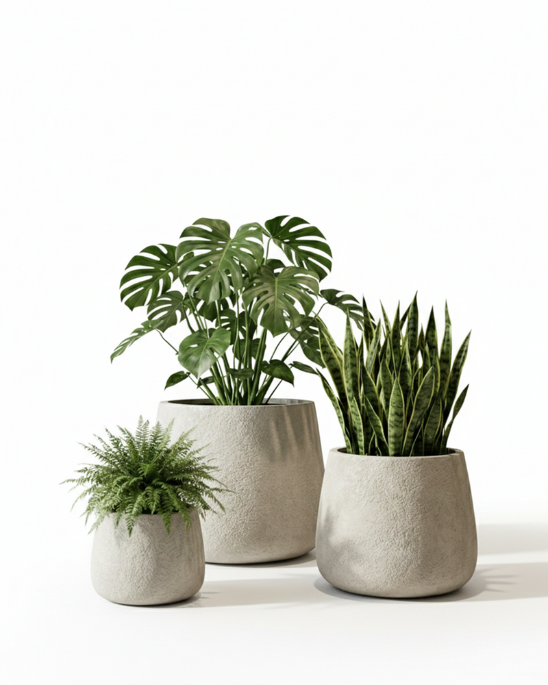 Panda Textured Fiberglass Planter – Soft Stone Grey