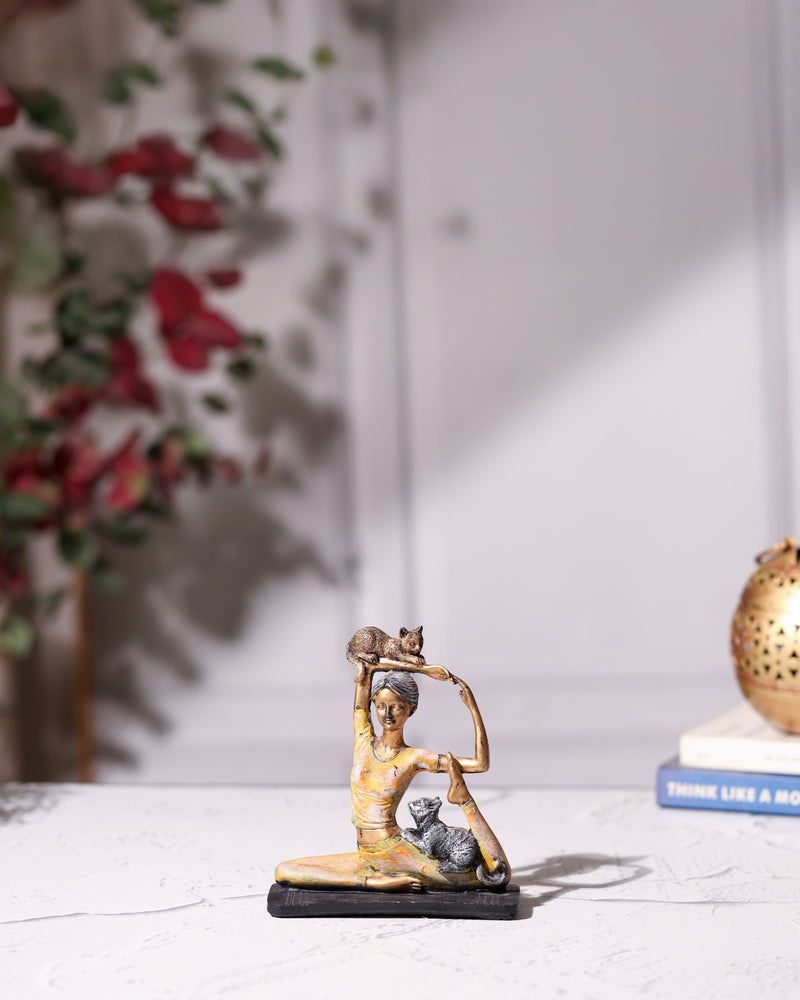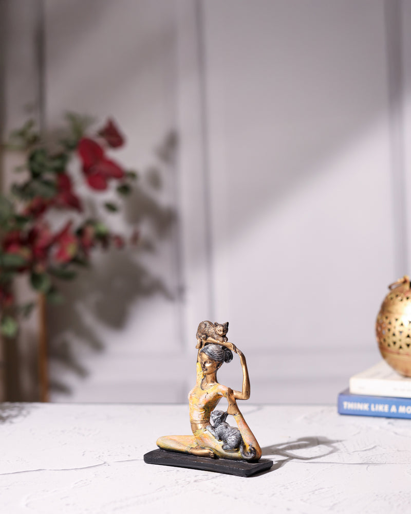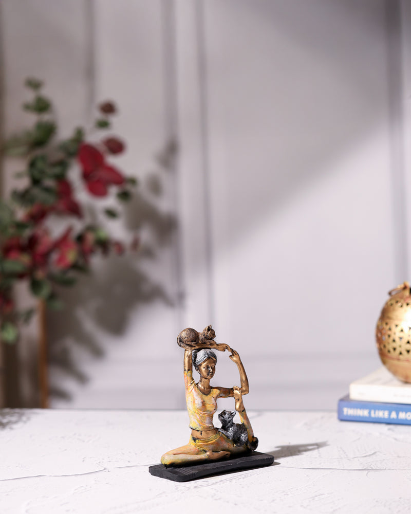 Rustic Yoga Lady with Cats – Overhead Stretch