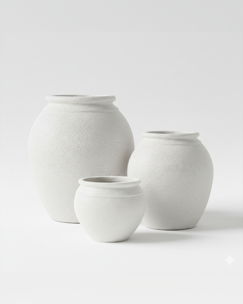 Santorini Collection - White Rusted Stone Planters (Set of 3)