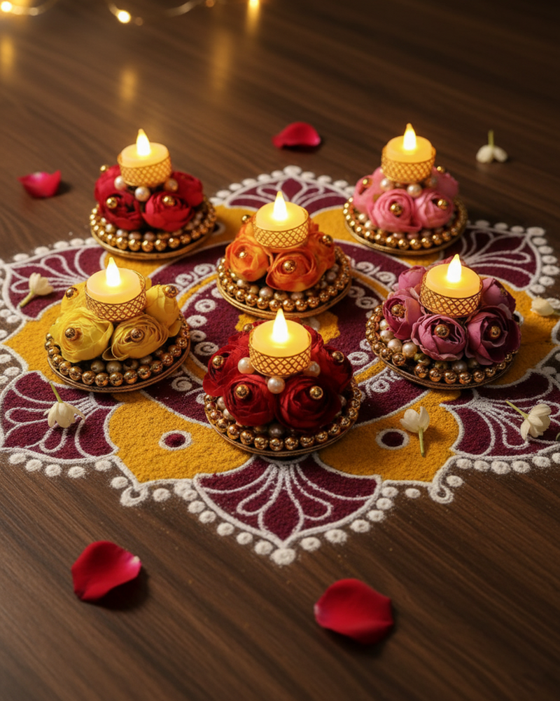 Set of 6 Assorted Floral Tealight Holders