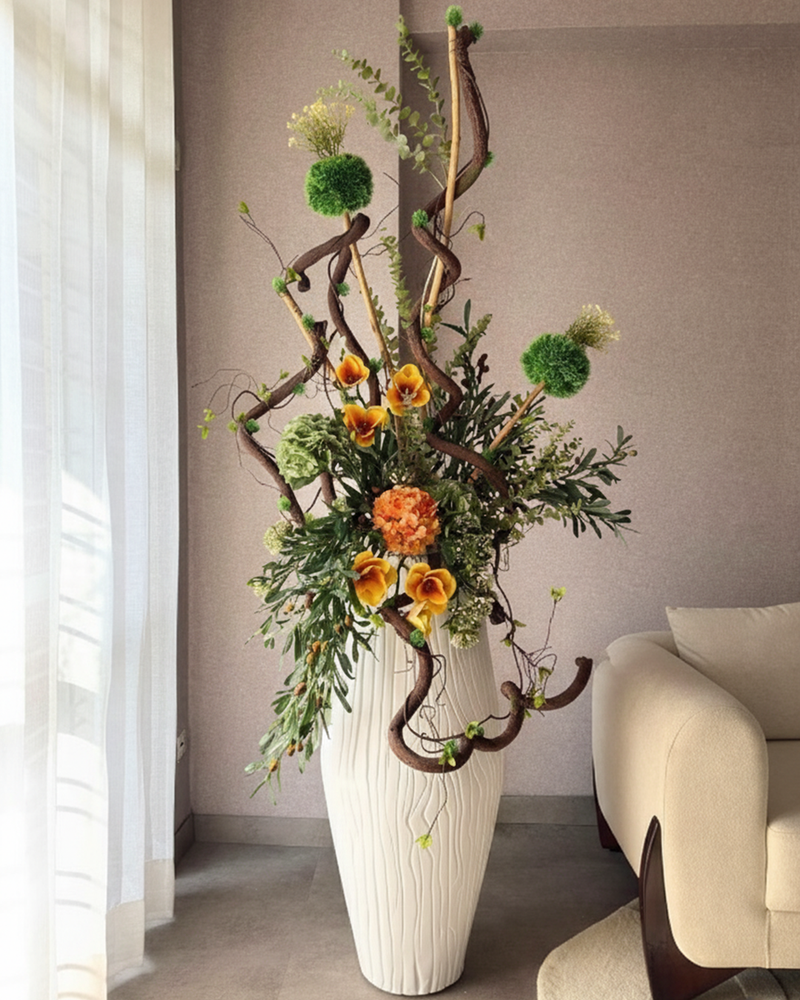 Towering Modern Dried Floral Floor Centerpiece With Pot