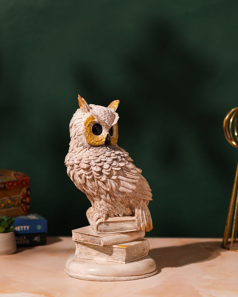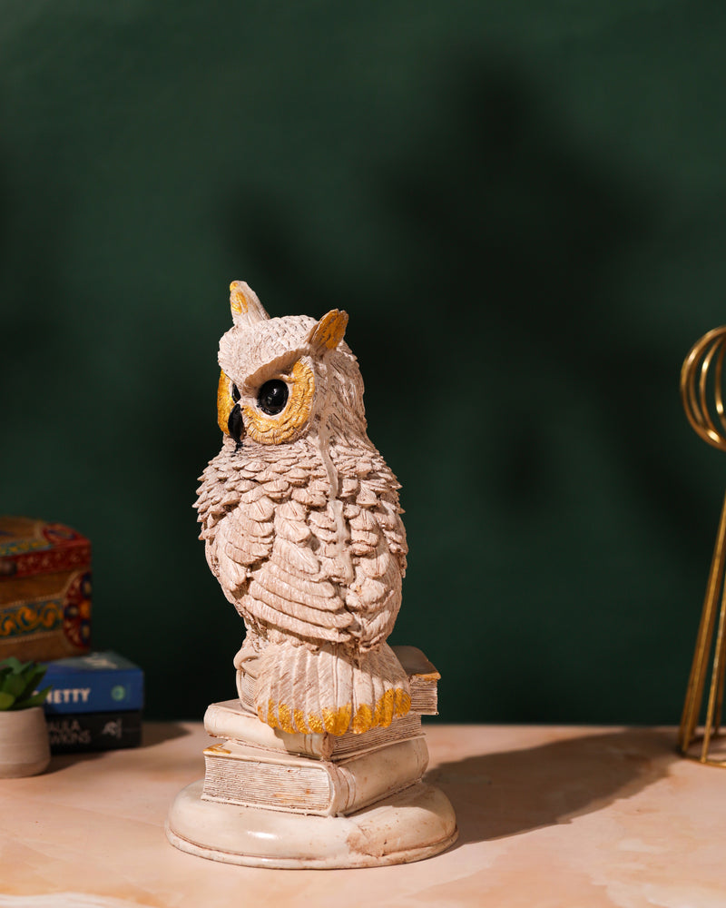 Wise White Owl on Book Stack